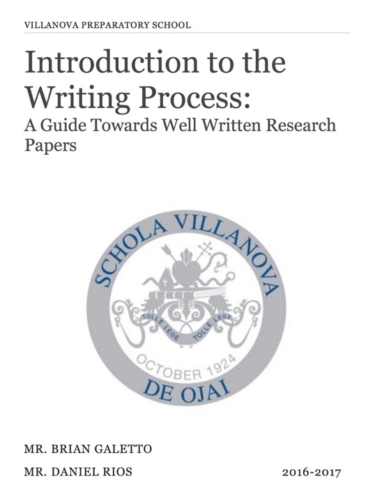 The Villanova Preparatory School writing manual is a step by step introduction to the VPS writing process and program. This manual will explain the process and expectations for each student at Villanova Preparatory School. Through the collaborative efforts of the Villanova English and Social Studies departments, this manual is an explicit guide to the VPS writing program.